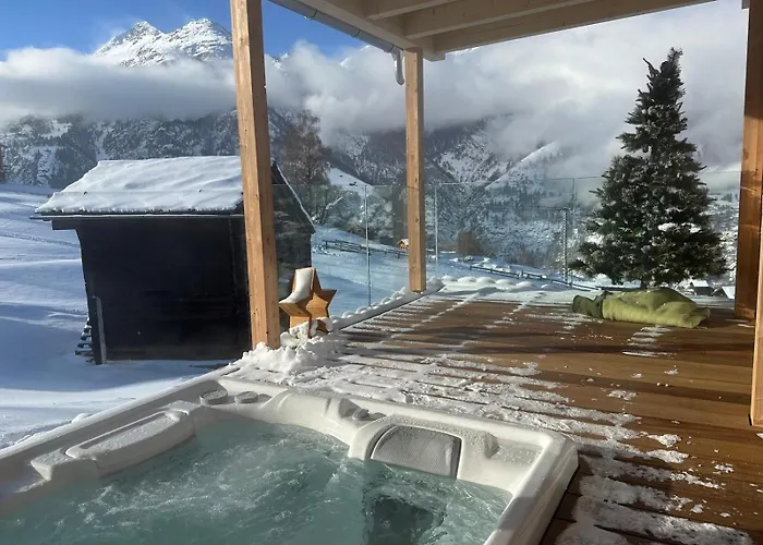 Η Tiny Bishorn Mit Privatem Whirlpool Βίλα Grächen απέχει περίπου 3 χλμ. από φυσικά τοπία, όπως Seetalhorn, και παρακινεί τους επισκέπτες να ασχοληθούν με σκι. Αυτό το κατάλυμα προσφέρει στους επισκέπτες μια χαλαρωτική εμπειρία παρέχοντας πρόσβαση στο τζακούζι και στη σάουνα.